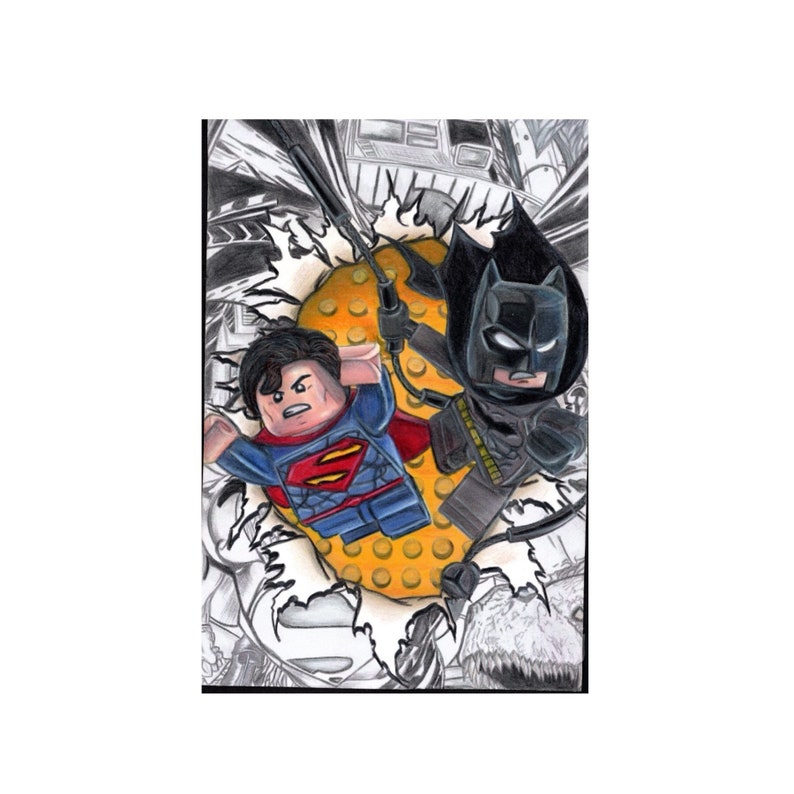 Batman Superman Heroes Realistic Colored Pencil Drawing Etsy