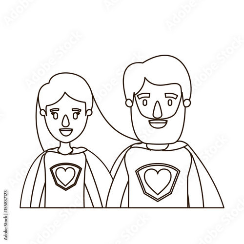 Sketch Contour Caricature Half Body Couple Female And Male Super