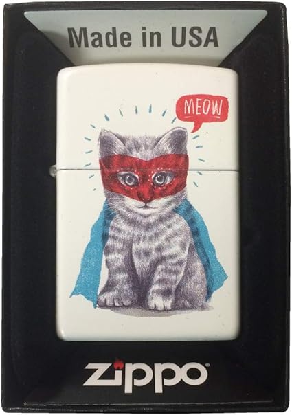 Amazon Com Zippo Custom Lighter White Matte Super Hero Cat