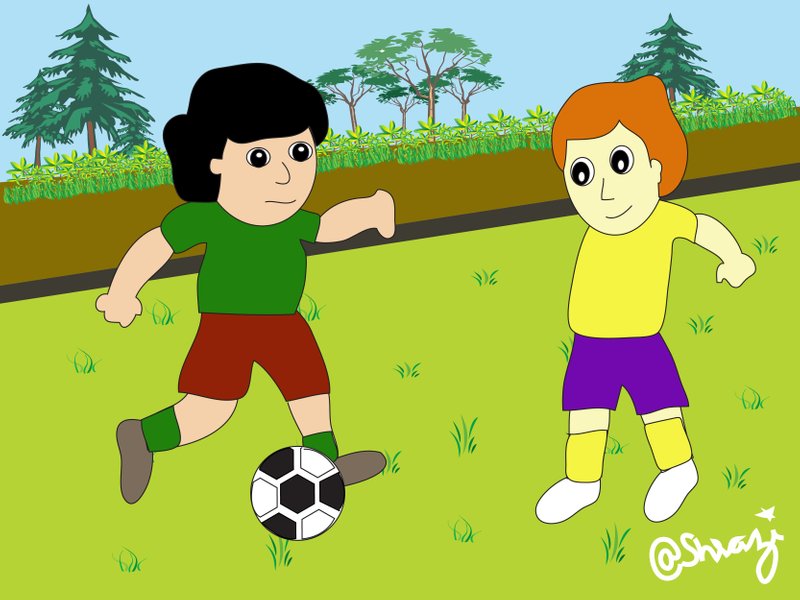 Drwaing Of Kids Playing Football At The Ground Dclick