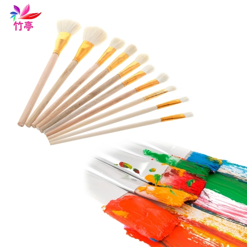 10 Pcs Lot Plastic Handle Paint Brush Painting Set Drawing Toys