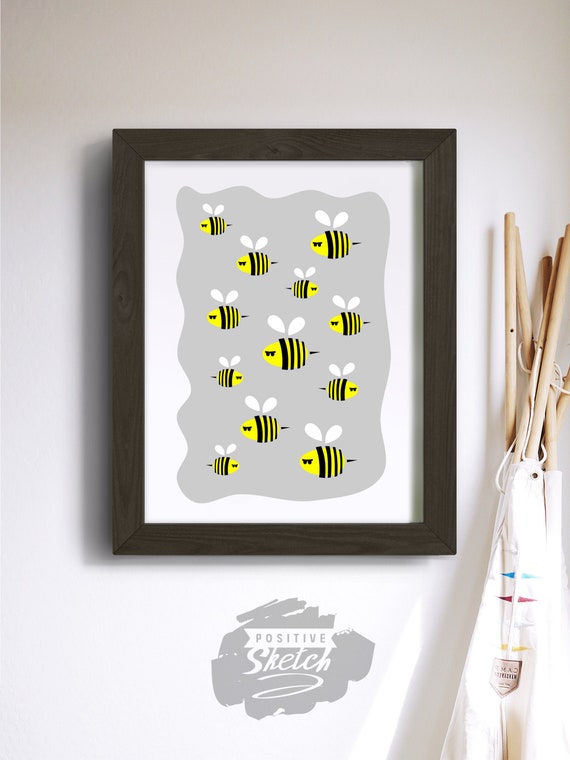 Angry Bee Bee Print Sketch Art Kids Poster Funny Drawing Etsy