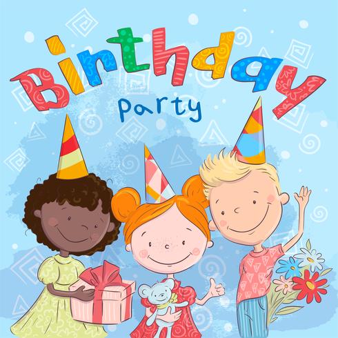 Poster Cute Kids With Gifts Hand Drawing Vector Illustration Cartoon Style Download Free Vectors Clipart Graphics Vector Art