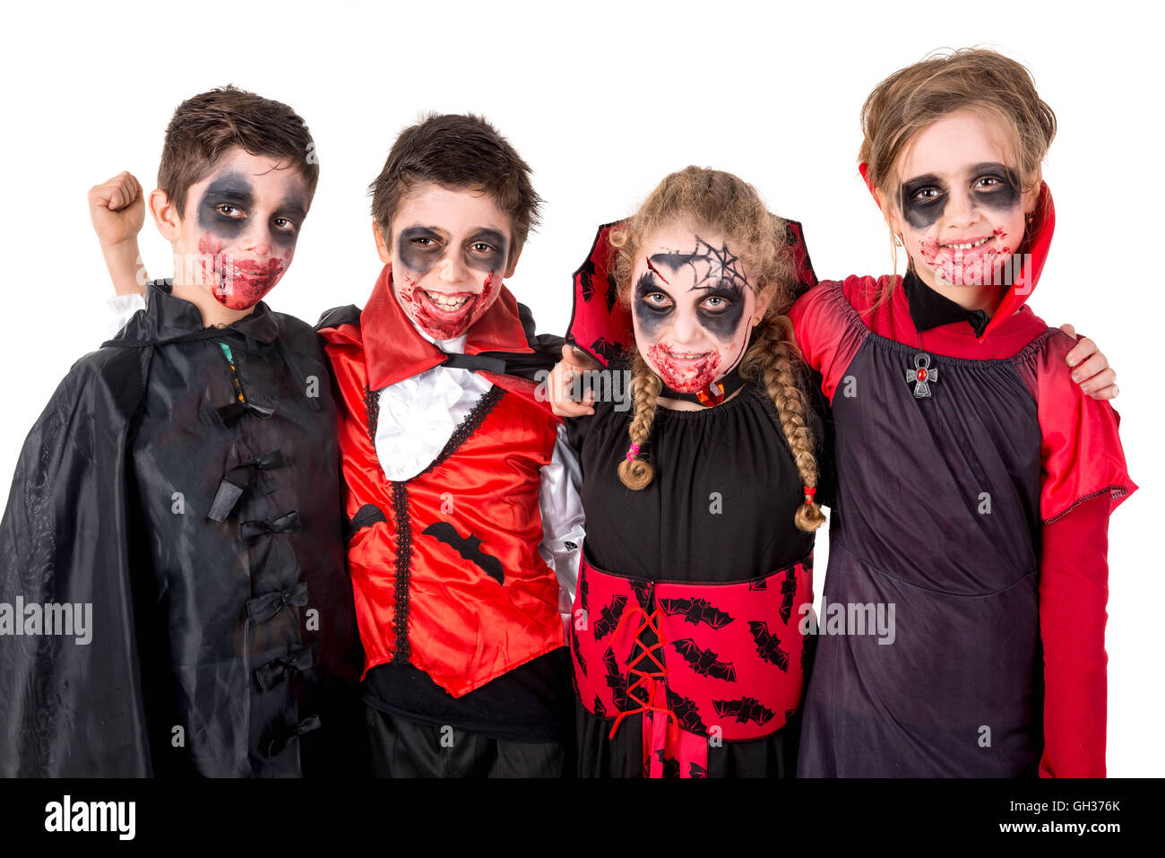 Group Of Kids With Face Paint And Halloween Vampire Costumes Stock