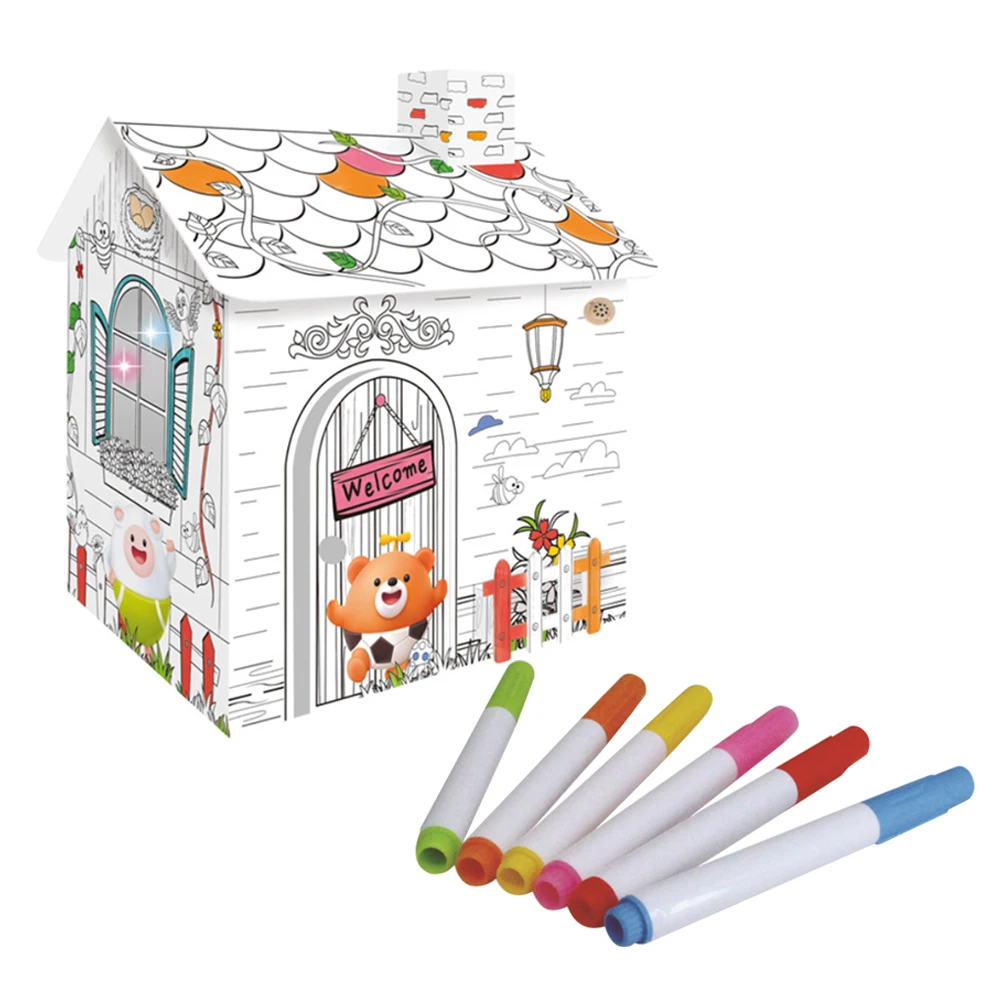 Kids Drawing Toy Diy Coloured Graffiti House With 6 Color Pen Hand