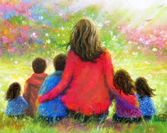 Mother And Four Children Out For A Walk Painting By Vickie Wade