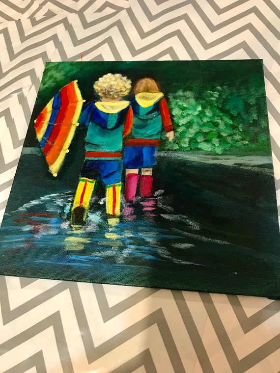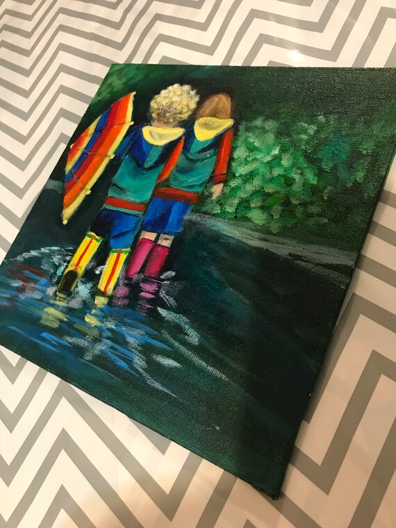 Little Boy In Rain Original Painting Kids Wall Art Three Etsy