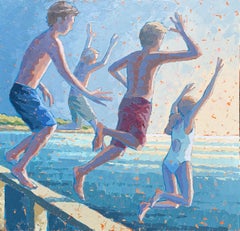 Paul Norwood Walking On Air Impasto Acrylic Painting Of Kids