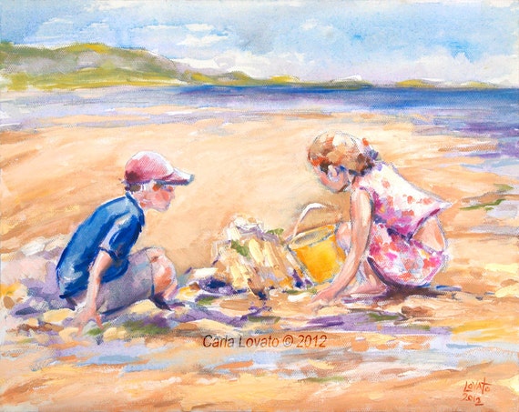 Special Request Painting Of Kids On Beach Order A Custom Etsy