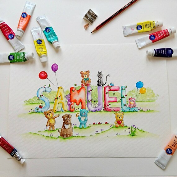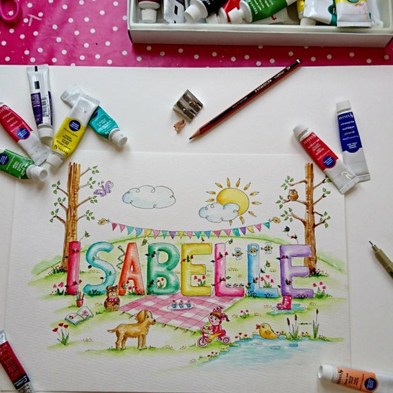 Custom Name Painting Personalized Childrens Watercolour Name Etsy
