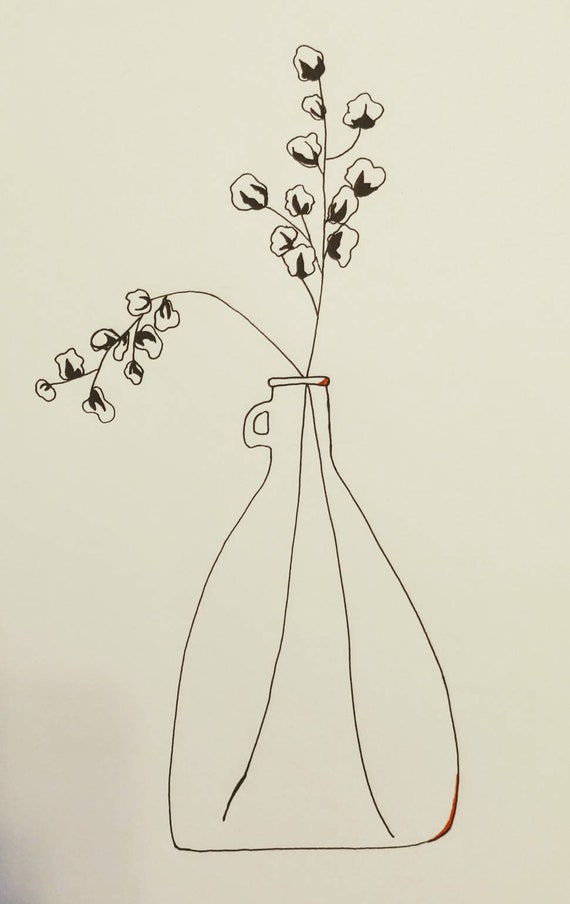 Farmhouse Cotton In Jug Pen Drawing Etsy
