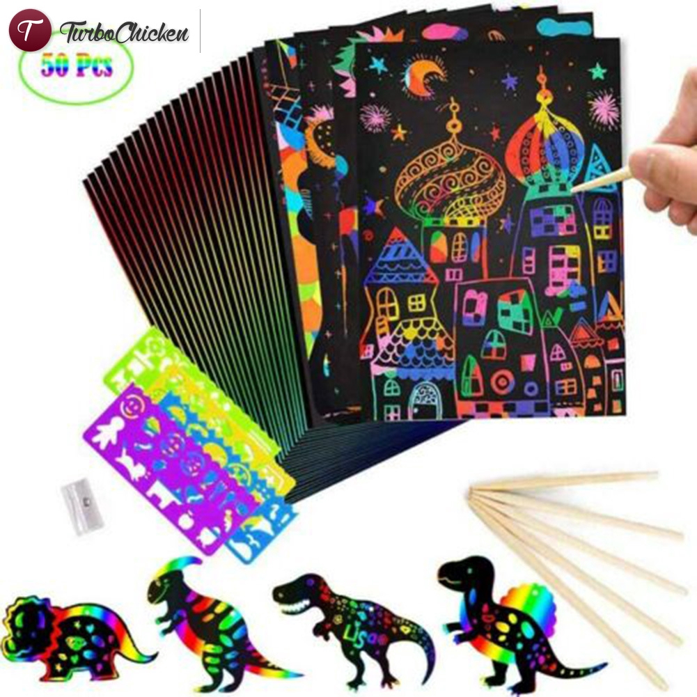 Cod Scratch Art Notes Paper Drawing Stick Holographic Rainbow