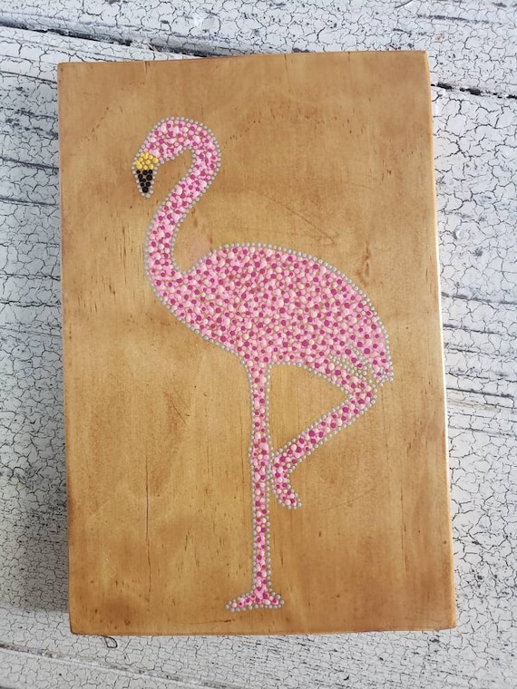 Flamingo Dot Art Wood Painting Flamingo Hanging Sign Etsy