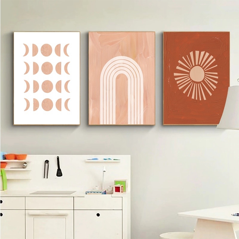 Pink Sun Rainbow Moon Poster And Prints Wall Art Canvas Painting